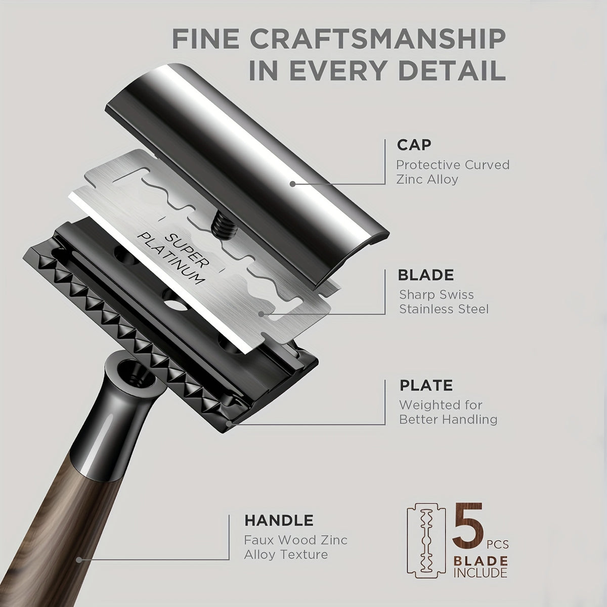 It uses standard double-edge stainless-steel blades, which are easy to replace and widely available.